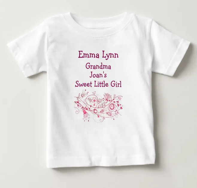 Note that all the text on these T-shirts is customizable, so if you want the grandma versions but with “Little Bundle of Joy” you can just write that instead of “Sweet Little Boy/Girl” and there you have it!