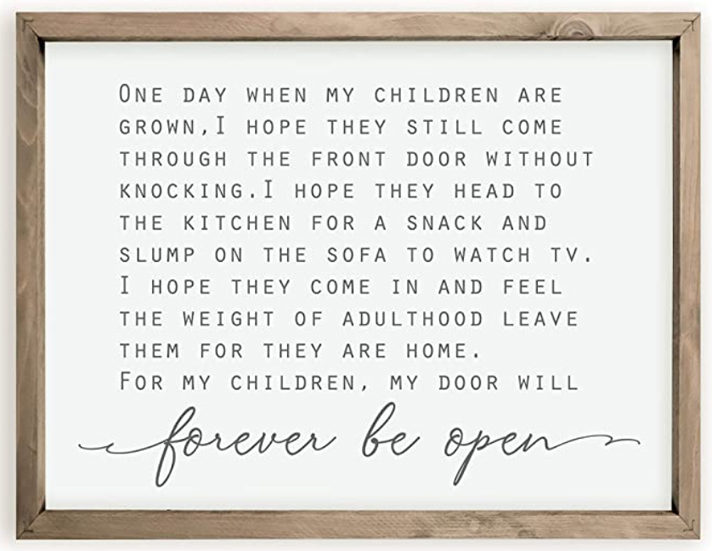 But first, here’s a sign that speaks in plain terms, mentioning ordinary occurrences, about the home children will always find inside their mother’s heart and in her house.