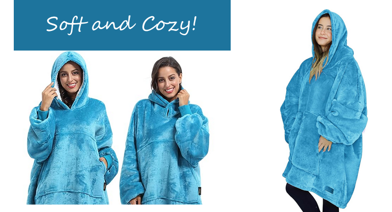 As these wearable blanket hoodies have a large appeal for teenagers, brands have come up with glow-in-the-dark patterns, which are a lot of fun. Here are two of my favorites. I know many young people would love one such oversized sherpa fleece sweatshirts to lounge in at Christmas 🙂 My twelve-year-old niece is one of them—and she’s only twelve! Her blanket hoodie will probably reach down to her ankles 🙂